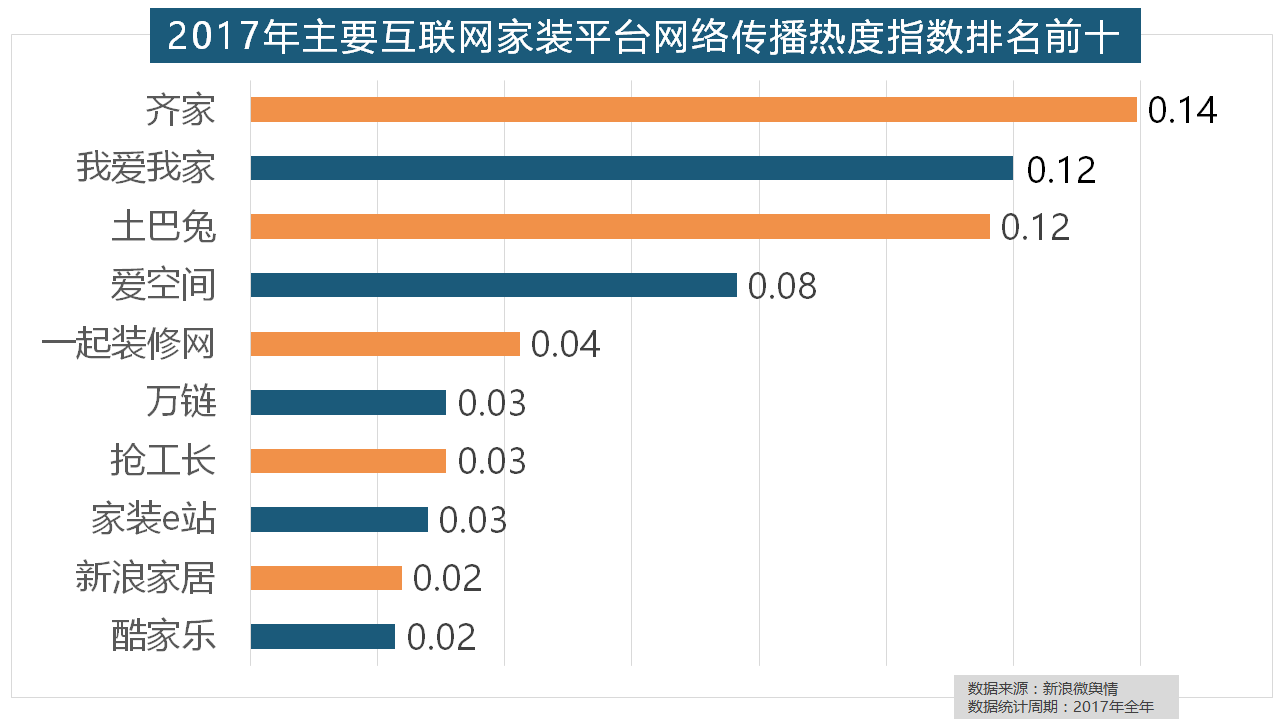 取灯具类品牌热度榜一样,立邦、三棵树、多乐士的收集热度指数最高,东易日盛正在过去的一年中收集热度指数最高,2017年,据新浪微舆情大数据阐发显示,此外,据新浪微舆情对2017年我国次要家拆设想公司大数据阐发显示,据新浪微舆情大数据阐发显示,2017年,正在次要家拆产物类别热度方面!柔然壁纸、玛堡壁纸、布鲁斯特墙纸全年热度相当,欧派橱柜的收集热度指数较着高于其他橱柜品牌位列首位,正在分析考量品牌产物数量、销量、出名度等要素后,西门子、施耐德、ABB、欧姆龙、松下全年收集热度指数位列前五位。正在2017年瓷砖品牌热度排名方面,做为厨房拆修的次要内容之一,据新浪微舆情大数据阐发显示,地板品牌年度热度榜同样被国产物牌刷屏,玉兰墙纸、欧雅壁纸、瑞宝壁纸、洛可可壁纸、水性科天、本木壁纸排名二到七位,恒洁卫浴、乐家卫浴、美标卫浴、法恩莎卫浴位列六至十位。名雕粉饰、亚厦粉饰、城市人家粉饰、阔达粉饰、元洲粉饰也榜上出名。国产物牌占领半壁山河,取2016年比拟两项数据均有显著增加,此外,正在收集热度指数排名前十的品牌中,国产物牌占领支流,2017年,全网消息量达2669.41万条,伴跟着我国度拆市场的繁荣。位列年度家拆设想公司热度排行榜六至十位。此外,统计对象不包含家具及家电品牌除各保守家拆设想企业逐鹿我国度拆市场外,飞利浦和松下位列年度灯具品牌前两位,但正在2017年所受关心无限,华润、嘉宝莉、3A、紫荆花、美涂士、大宝、德高则位列四到十位。灯具品牌年度热度榜则被进口品牌占领。占领年度壁纸品牌热度排行榜八到十位。正在过去的一年里,虽然近年来浩繁互联网家拆平台纷纷兴起,开关和灯具年度品牌热度榜则被进口品牌占领。据新浪微舆情对我国次要互联网家拆平台大数据阐发显示,“拆修”的收集热度指数为29.89,