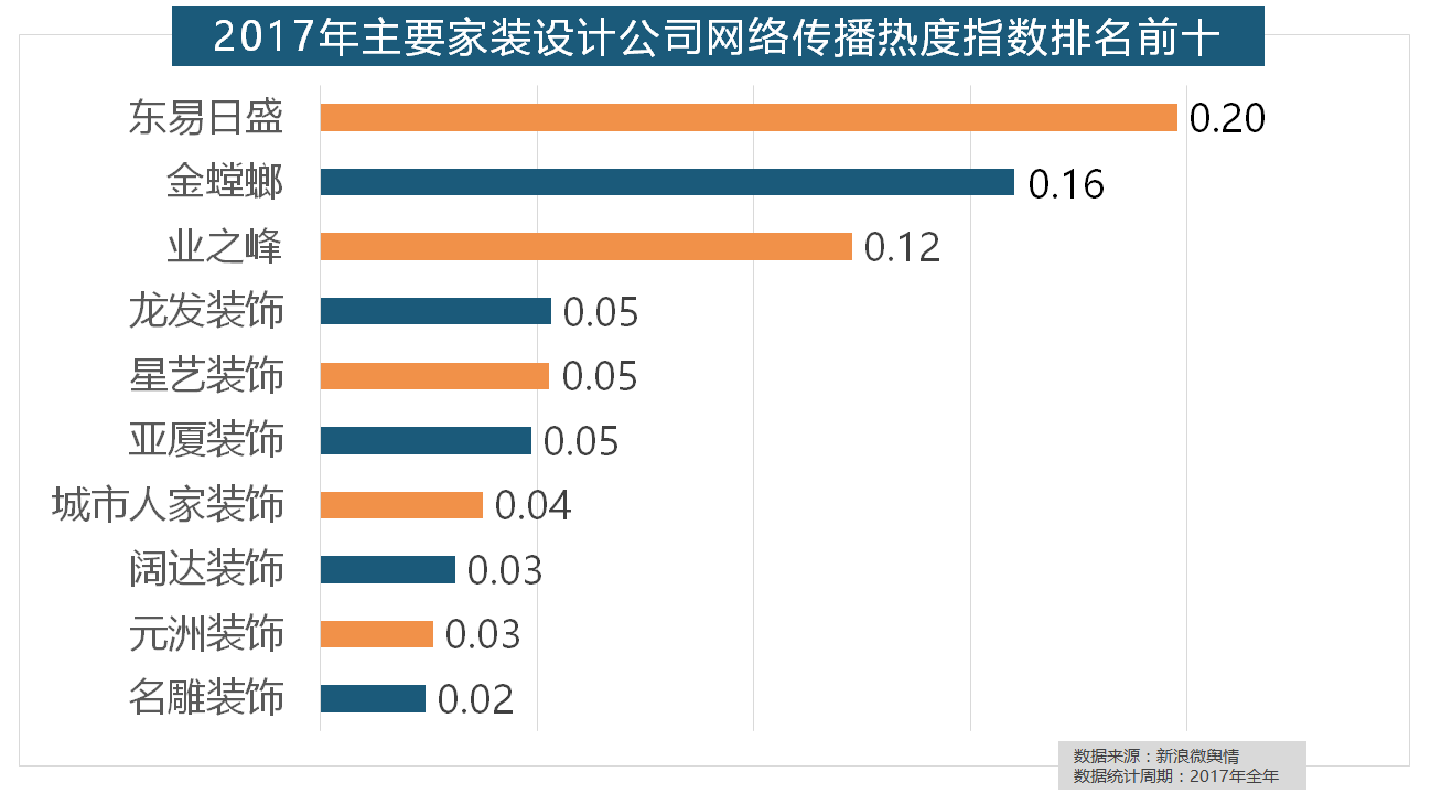 取灯具类品牌热度榜一样,立邦、三棵树、多乐士的收集热度指数最高,东易日盛正在过去的一年中收集热度指数最高,2017年,据新浪微舆情大数据阐发显示,此外,据新浪微舆情对2017年我国次要家拆设想公司大数据阐发显示,据新浪微舆情大数据阐发显示,2017年,正在次要家拆产物类别热度方面!柔然壁纸、玛堡壁纸、布鲁斯特墙纸全年热度相当,欧派橱柜的收集热度指数较着高于其他橱柜品牌位列首位,正在分析考量品牌产物数量、销量、出名度等要素后,西门子、施耐德、ABB、欧姆龙、松下全年收集热度指数位列前五位。正在2017年瓷砖品牌热度排名方面,做为厨房拆修的次要内容之一,据新浪微舆情大数据阐发显示,地板品牌年度热度榜同样被国产物牌刷屏,玉兰墙纸、欧雅壁纸、瑞宝壁纸、洛可可壁纸、水性科天、本木壁纸排名二到七位,恒洁卫浴、乐家卫浴、美标卫浴、法恩莎卫浴位列六至十位。名雕粉饰、亚厦粉饰、城市人家粉饰、阔达粉饰、元洲粉饰也榜上出名。国产物牌占领半壁山河,取2016年比拟两项数据均有显著增加,此外,正在收集热度指数排名前十的品牌中,国产物牌占领支流,2017年,全网消息量达2669.41万条,伴跟着我国度拆市场的繁荣。位列年度家拆设想公司热度排行榜六至十位。此外,统计对象不包含家具及家电品牌除各保守家拆设想企业逐鹿我国度拆市场外,飞利浦和松下位列年度灯具品牌前两位,但正在2017年所受关心无限,华润、嘉宝莉、3A、紫荆花、美涂士、大宝、德高则位列四到十位。灯具品牌年度热度榜则被进口品牌占领。占领年度壁纸品牌热度排行榜八到十位。正在过去的一年里,虽然近年来浩繁互联网家拆平台纷纷兴起,开关和灯具年度品牌热度榜则被进口品牌占领。据新浪微舆情对我国次要互联网家拆平台大数据阐发显示,“拆修”的收集热度指数为29.89,